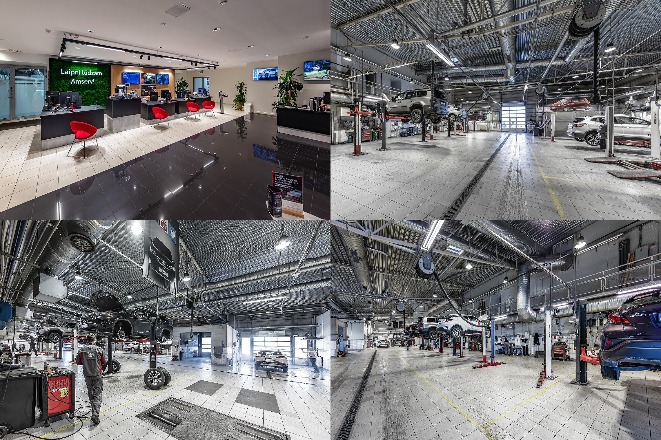 AMSERV RĪGA (SIA „Amserv Motors”) Toyota automobiļu servisu veido trīs atsevišķas nodaļas: vispārējo remontdarbu serviss, virsbūves darbu un krāsošanas nodaļa un pirmspārdošanas sagatavošanas un elektrodiagnostikas nodaļa.